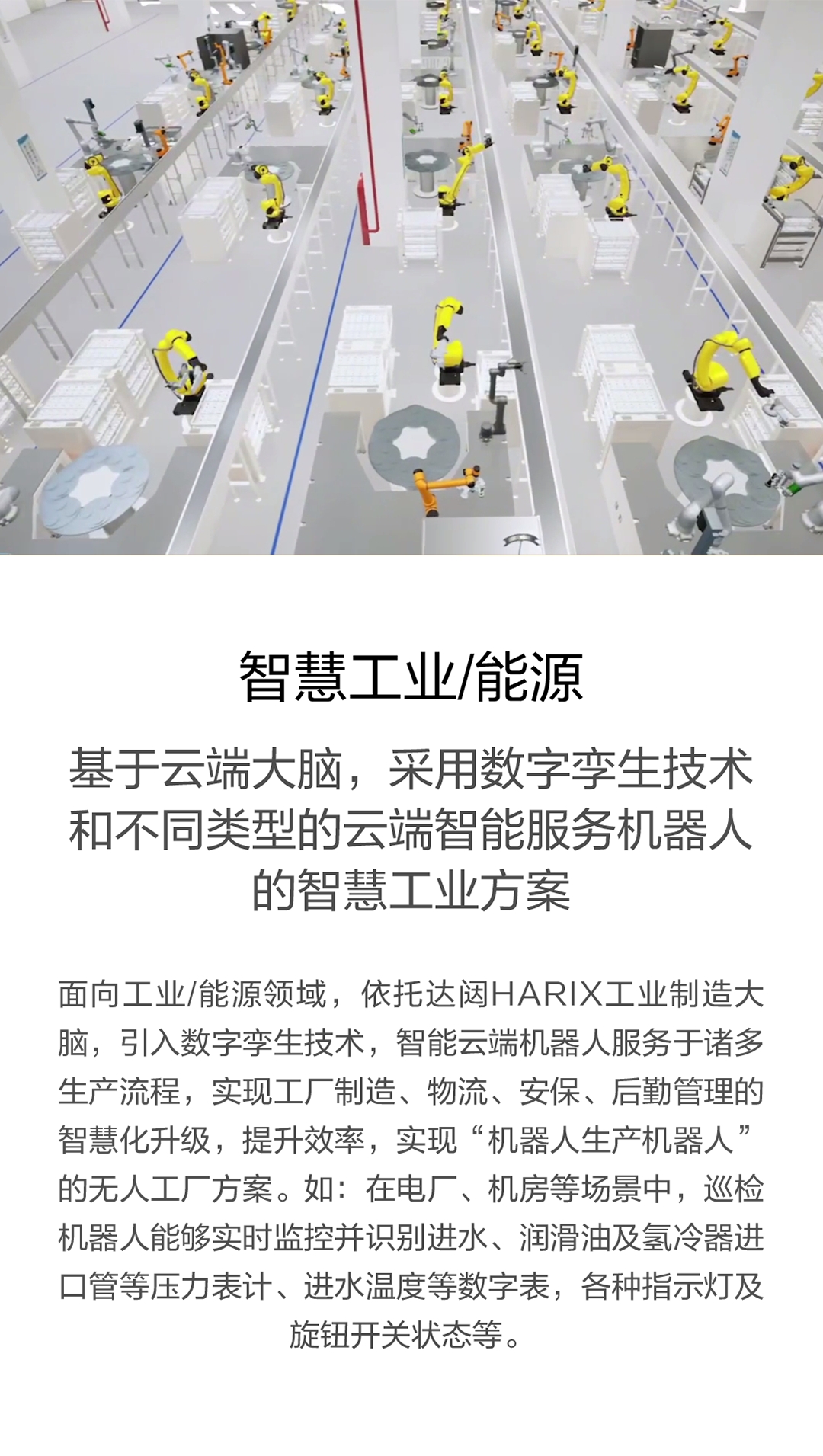 面向工业/能源领域,依托星空HARIX工业制造大脑,引入数字孪生技术,智能云